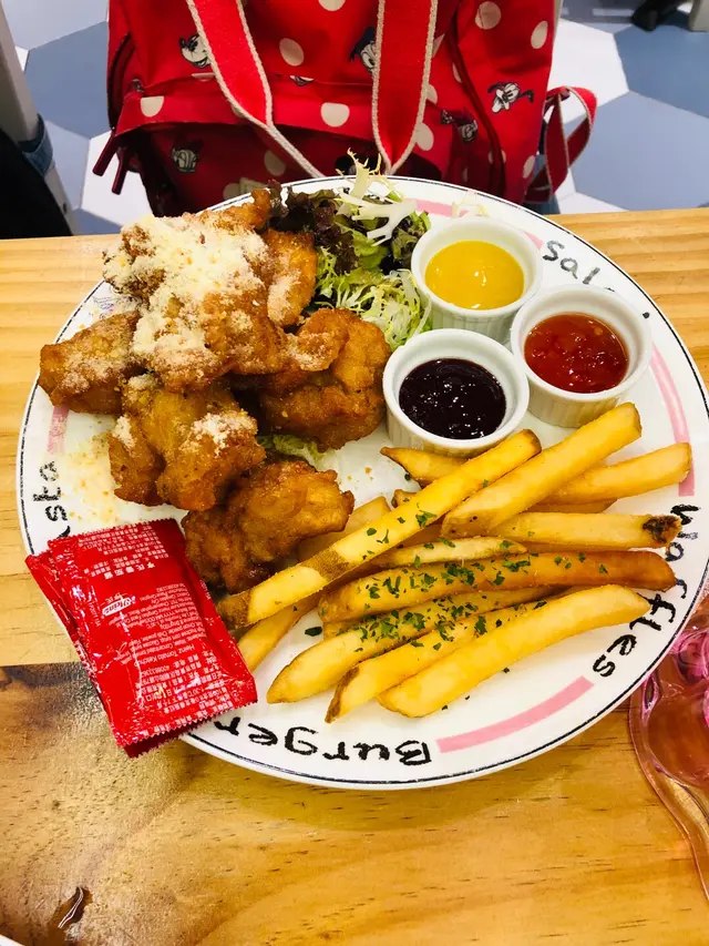 跟住到個雞粒,雞粒有三個特色醬,包括雞醬、蜜糖芥末醬&士多啤梨醬,雞粒好好咪,而三款醬黎講,我同外甥女最鍾意係士多啤梨醬,因為食落去感覺D士多啤梨好新鮮,而姐姐就鍾意蜜糖芥末醬。