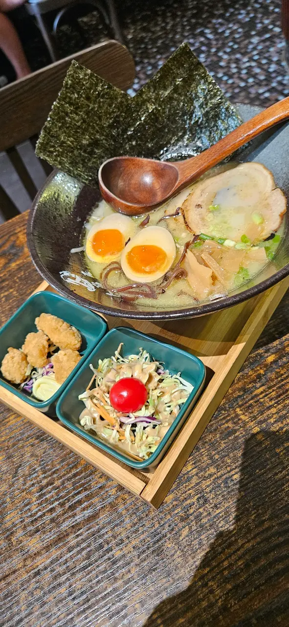 令人舒服的日式小山店 Carrie-1204等级42024-07-02630 views Follow 久留居 日式料理因工作關係今日突然要去西貢市中心,去到已經差不多下午一點,西貢真係好熱,搞到胃口下降,經過咗幾間餐廳望望門口擺放嘅餐牌都無甚興趣,行去海堤嘅一方,見到間以前唔多覺眼嘅日本餐廳,望吓餐牌幾吸引就入咗去,叫咗個午市定食。原味豚骨拉麵豬骨湯底唔係好濃但係夠味道的,有兩大塊叉燒,木耳絲,竹筍,牙菜,最欣賞兩塊紫菜。沙律正正常常,炸雞係現成貨合格,再加杯即磨咖啡醒神晒。58蚊食到成個套餐,性價比極高。店員仲要好好禮貌,推介!2421331The above review is the personal opinion of a user which does not represent OpenRice's point of view.2Share令人舒服的日式小山店 久留居 https://s.openrice.com/QrLT0Kfyg00Report Post Ratings4Taste5Decor5Service5Hygiene5ValueDate of Visit2024-07-02Dining Method堂食Spending Per Head$58 (午餐)