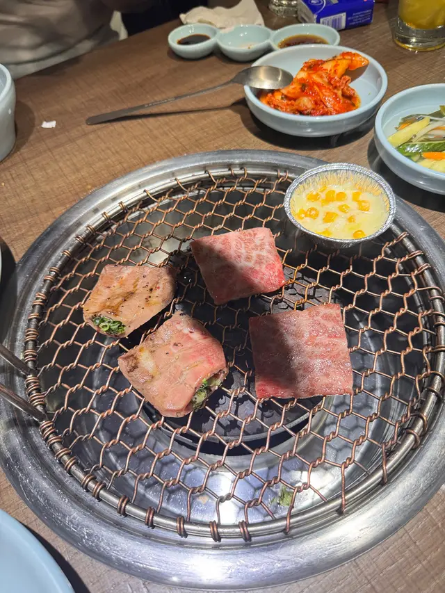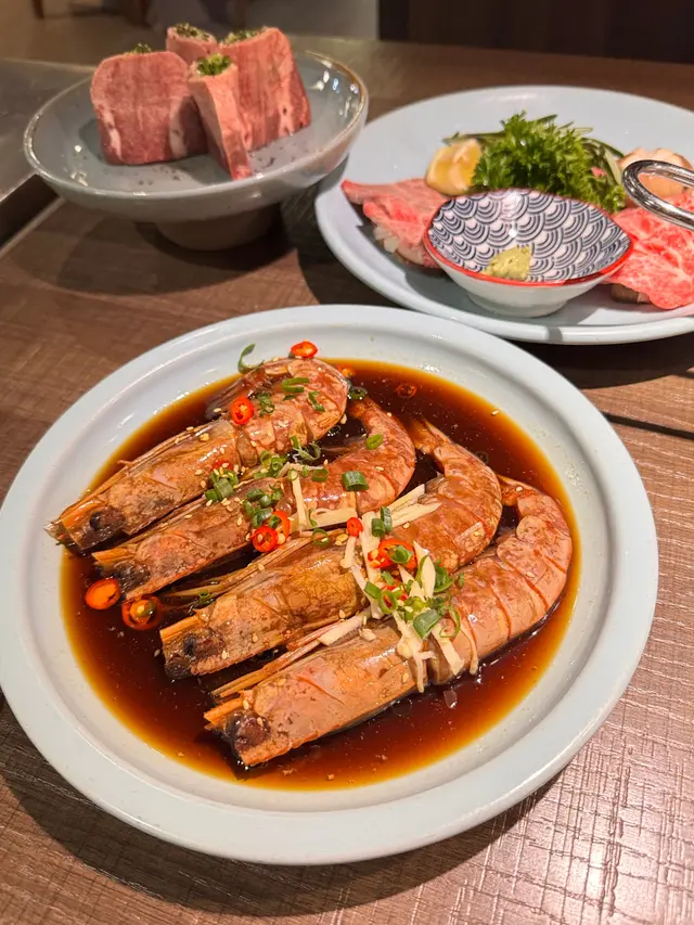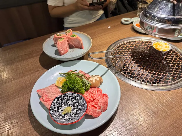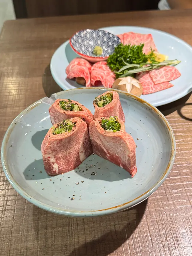 首先上枱嘅日本和牛肩肉盛,切得厚薄啱啱好,烤到表面微焦,咬落口先係脆卜卜嘅外皮,跟住就係油香四溢嘅肉汁,軟嫩到幾乎唔使嚼,咽落肚仲留返陣淡淡奶香,單係呢碟就值回票價!