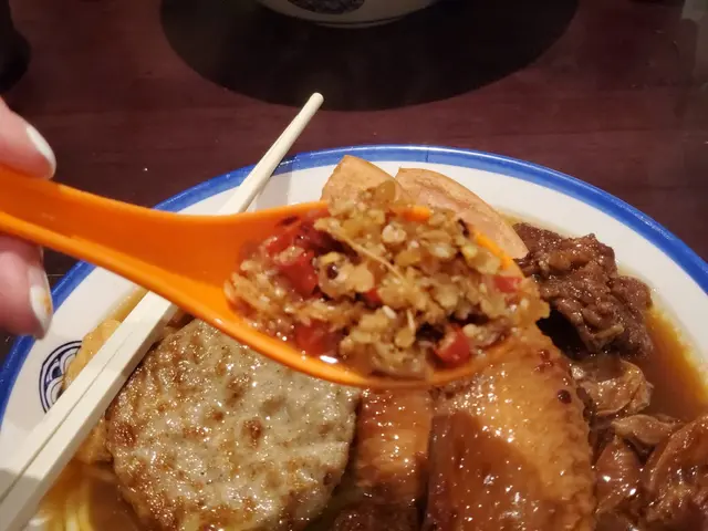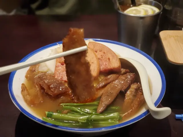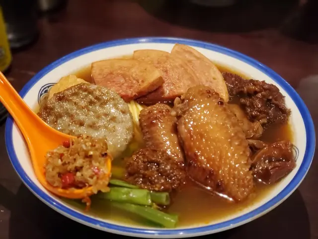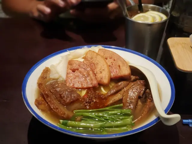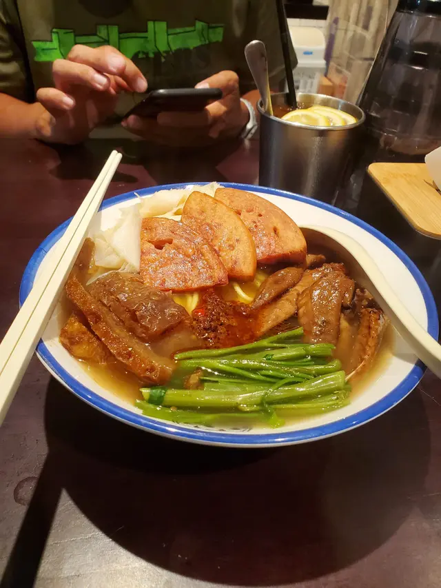 朋友的麵內有油麵、雞翼尖、午餐肉、牛栢菜、豬皮再加埋佢招牌辣汁,最初以為佢啲辣汁唔會好辣,但我地睇少左佢啦,愈食愈FEEL 到辣,但又好鬼過癮,搞到你愈食愈想再食。湯底好鮮甜。雞翼尖同埋豬皮都整得好入味。