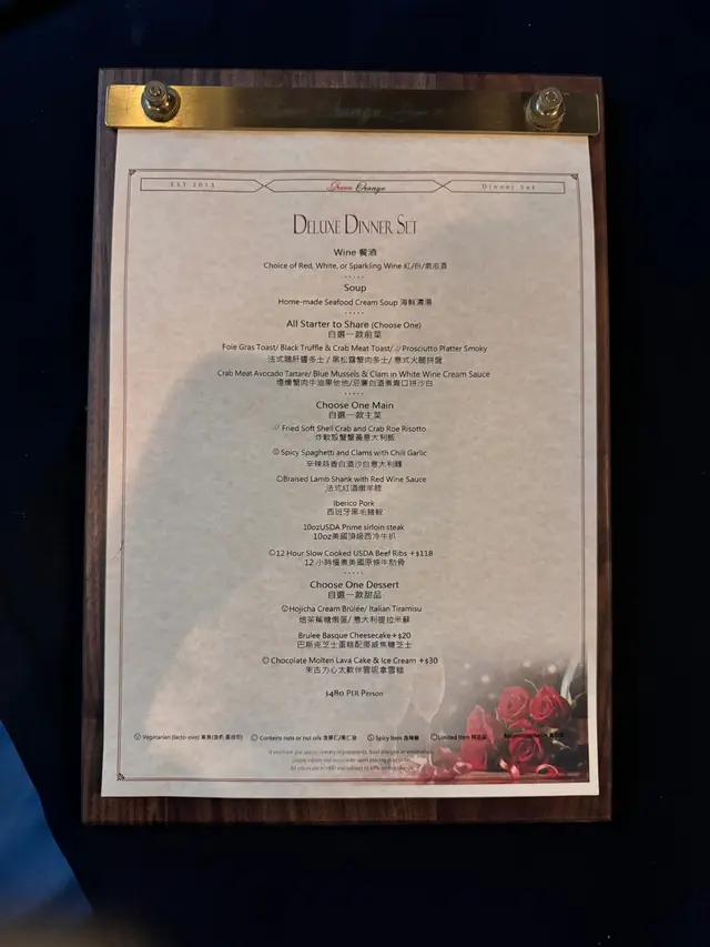 + $168 多款美酒(紅白酒、氣泡酒、雞尾酒)、各種特調及非酒精飲品