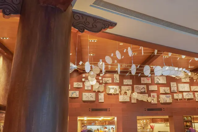 餐廳樓底很高,有飛龍在天作為裝飾,牆上也掛了一些水墨畫。
