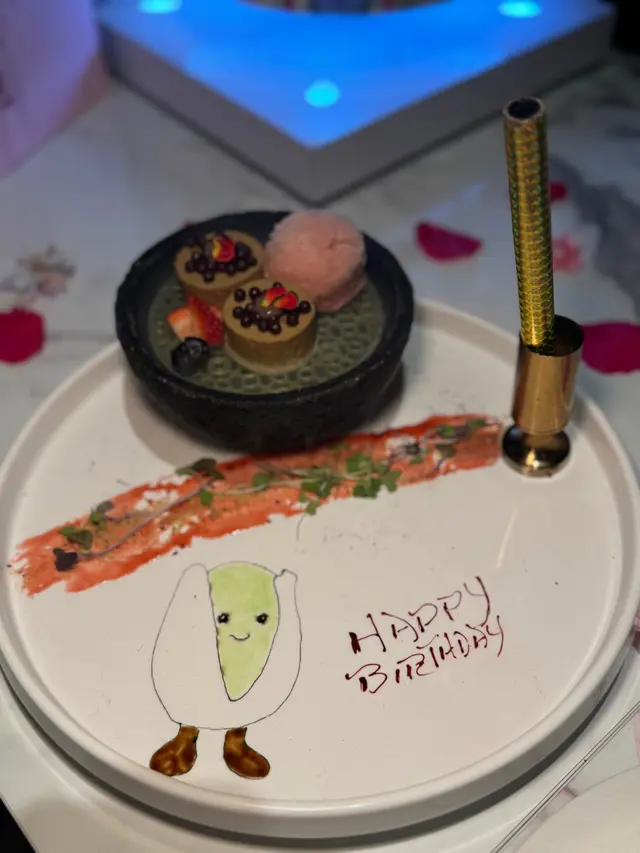 -訂座時講好畫碟圖案,又真係畫得幾可愛!甜品嘅雪粑酸酸甜甜refreshing