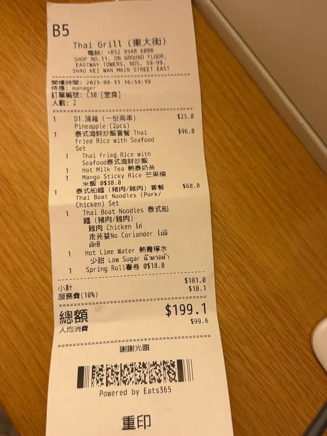 泰 grill 大部分的餐點價格都很親民