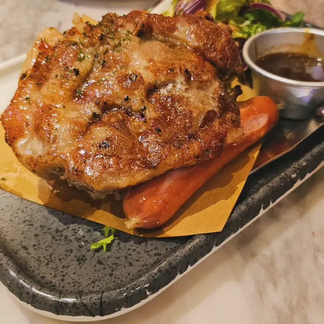 🐷香烤厚豬扒拼芝士腸 配珍珠飯•田園沙律