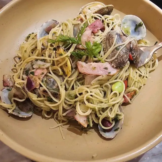 🍝輕量鮮蜆青醬天使麵
