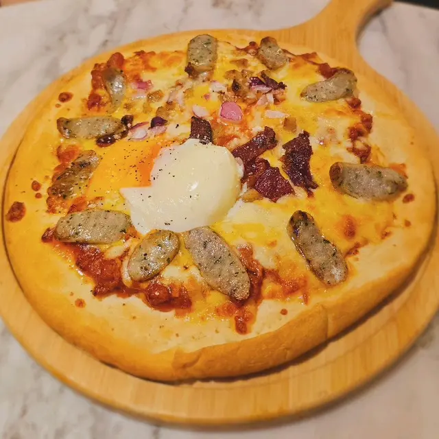 採用招牌名來改的菜式當然要一試啦!加上意大利餐廳著名食物是披薩,味道都唔會差。一顆溫泉蛋放置在披薩中間一切開蛋液緩緩流出,分散在每塊披薩上,每件披薩配料分佈都相當平均,脆卜卜的餅邊配上各種配料食落口感豐富有層次,味道唔會太膩及過咸值得一試👍🏻。 (這份是下午茶份量)