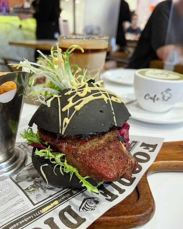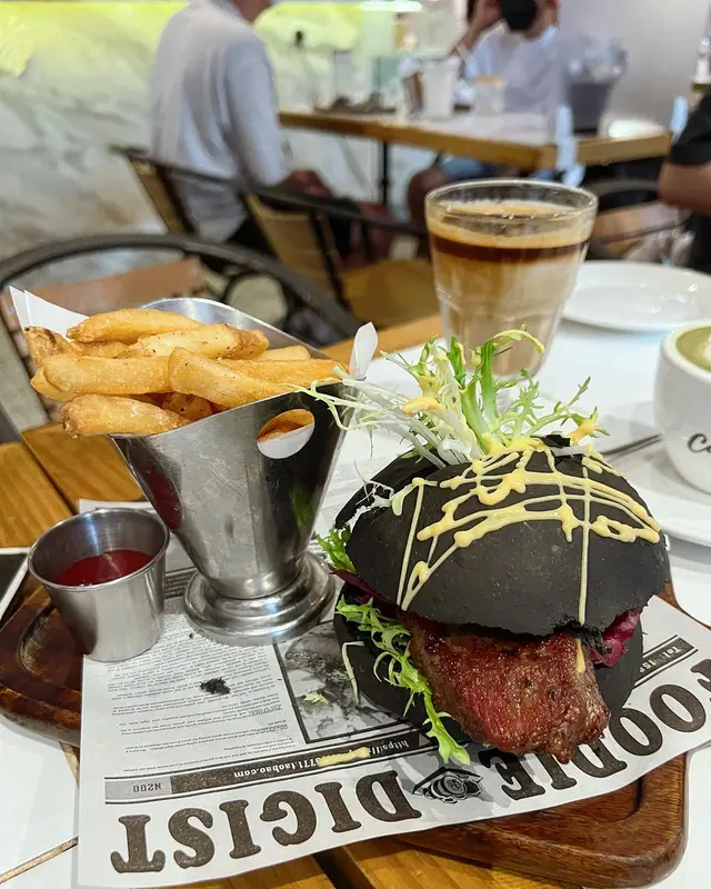 竹炭包夾著新鮮的沙律菜和很大一塊的肉眼扒‼️🥩 肉眼扒肉質柔嫩‼️👅 車打芝士、忌廉芝士製成的醬汁很滋味‼️😋