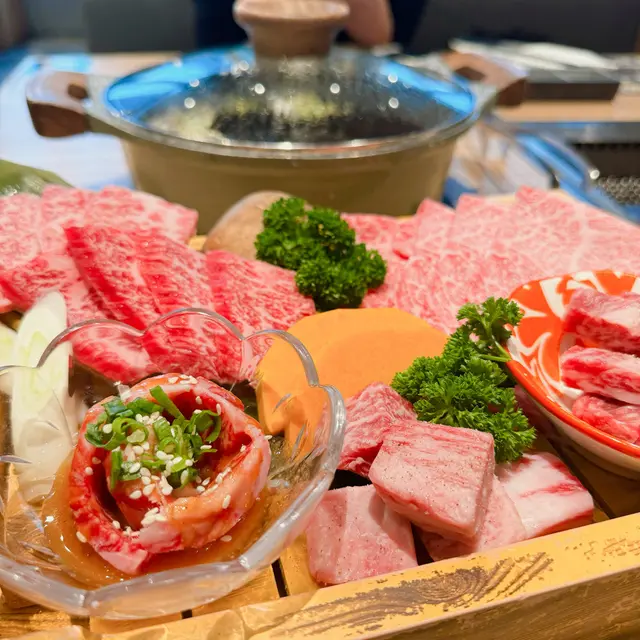 一開始先會送上一個頭盤,每款牛都各有千秋,最令我驚喜嘅絕對系和牛粒!即使燒耐咗肉質仲系好腍,完全唔會有筋👍🏼而用作涮涮鍋嘅薩摩牛牛肩胛薄切更系我嘅至愛!放入味道濃郁嘅壽喜燒鍋,數秒嘅時間再沾蛋液一齊食,入口即溶嘅口感加埋壽喜燒同蛋液嘅搭配,絕對系頂呱呱🥰