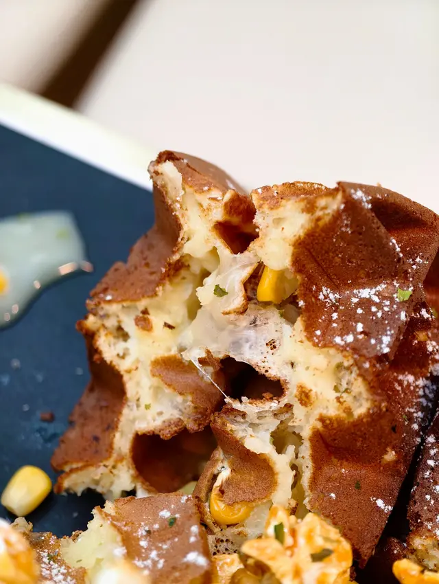 粟米濃湯拉絲麻糬窩夫(68元)