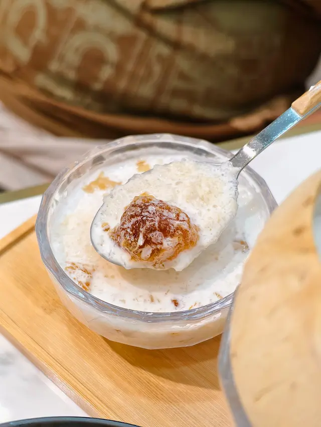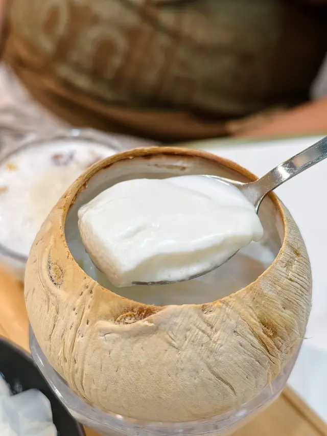 選了熱吃,椰皇的香味更足,口感非常滑嫩,味道清甜。吃的時候再加上滑嫩的桃膠和雪燕來豐富口感,更滋補的感覺。