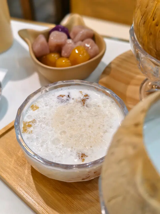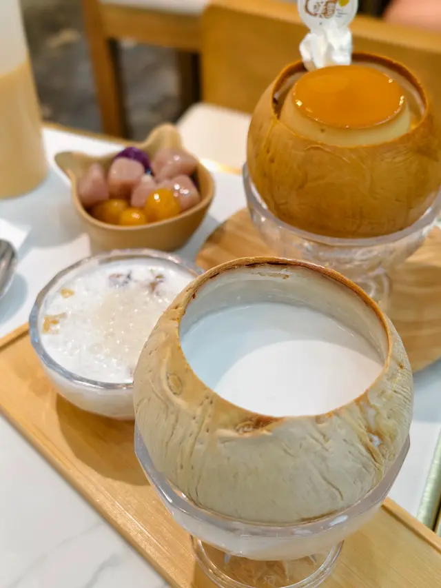 焦糖布甸椰皇(62元)加三色芋圓(6元)