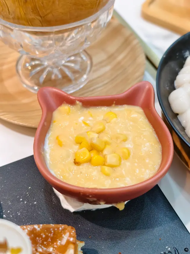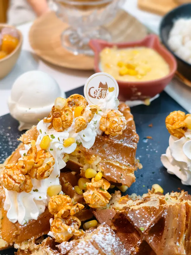 第一次看到這個口味,真的挺特別的!粟米濃湯是鹹味的,配上烤得外脆內軟的麻糬窩夫,變成一個又鹹又甜又軟糯又有粟米的清香的多重口感和味道。愛甜人士還可以加上蜜糖和煉奶,味道會更香濃。本身還配上有雪糕,性價比無敵!