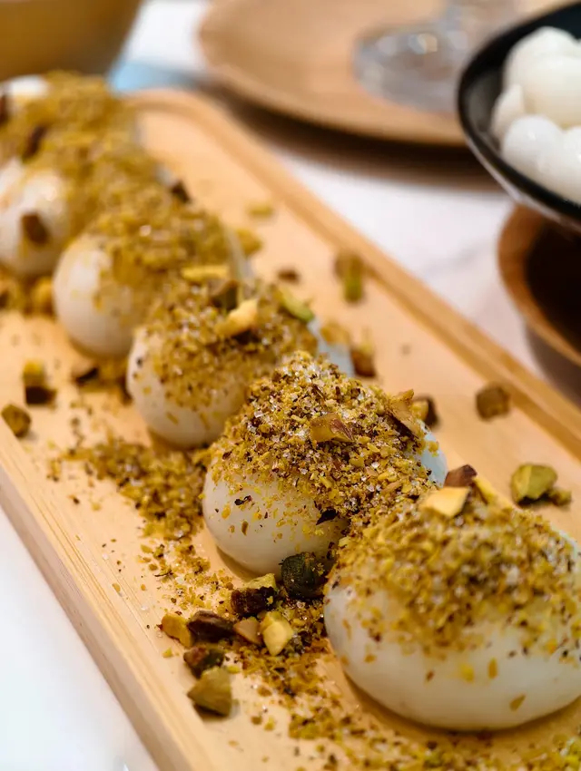 如果湯丸也是開心果味就好了,不過就不是這價錢了!湯丸是芝麻湯丸,上面加上大量的開心果脆和砂糖,令湯圓多了一份脆脆的口感,而湯圓亦有香濃的芝麻流心。