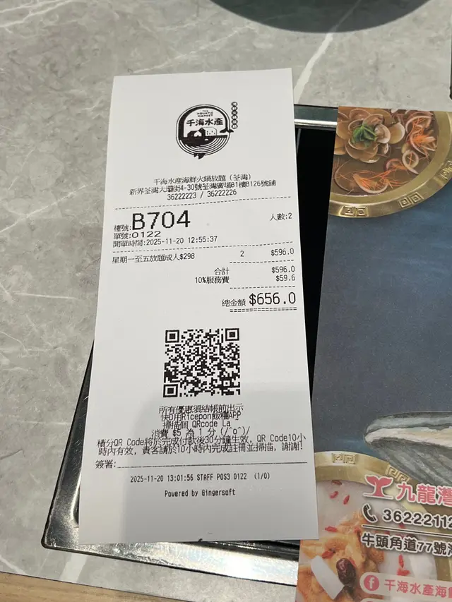 任撈海鮮 YandyNg等级42025-11-20 关注 今日我同朋友去咗荃灣嘅千海水產海鮮火鍋放題,3小時任食任撈嘅活海鮮,好爽呀!一入去,氣氛已經好熱鬧,平日午市都座無虛席。我哋首先揀咗花膠湯底,再出去撈咗幾樣海鮮,鮮美嘅蝦、肥美嘅蟹、鮮嫩嘅鮑魚應有盡有。每一樣海鮮都係極度新鮮,特別係蝦,啖啖鮮甜多汁,咬落去嘅時候,蝦肉彈牙且厚實;蟹肉更係嫩滑,仲有我好鍾意食嘅厚切白鱔好正啊~打邊爐仲有多款配料、飲品甜品款式多到你冇可能食得晒,哈!仲有多款熟食,烤羊架、牛舌串燒、蒜蓉焗生蠔,真係好味;又有乳鴿外脆內軟多汁,還有各式各樣嘅冷盤小食,例如麻辣小龍蝦、口水雞 、蟹粥、烤榴槤、花雕豬手,而家天氣凍,仲有蛇羹㖭啊!以上食记乃用户个人意见 , 并不代表OpenRice之观点。赞好分享任撈海鮮 千海水產海鮮火鍋放題 https://s.openrice.com/QrLT0vqfV00检举 张贴 评分5味道5环境5服务5卫生5抵食用餐途径堂食