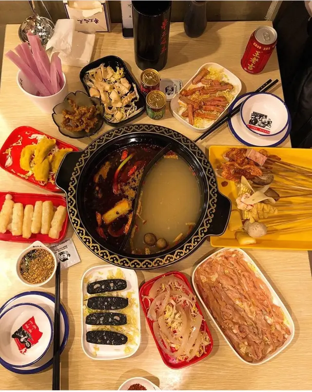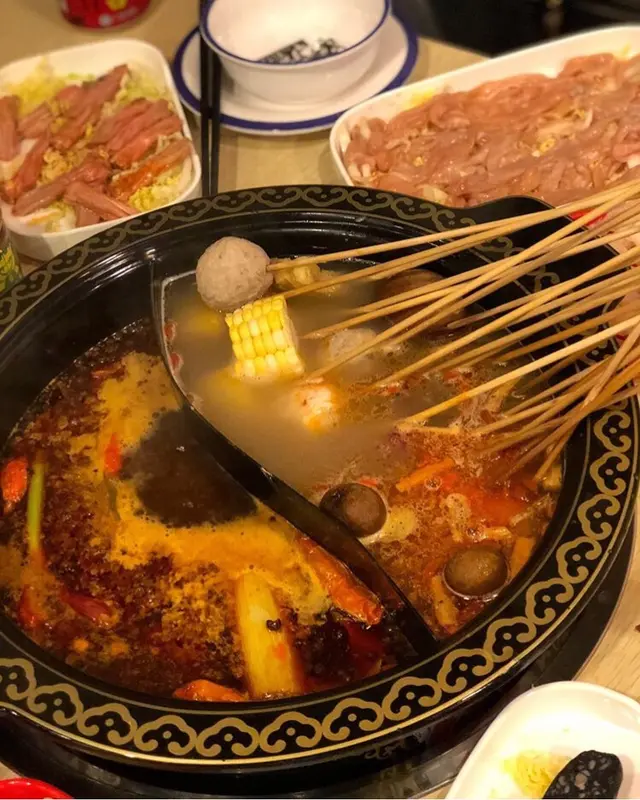 食成都串串湯底緊係要麻辣,不過有時食菜唔想咁辣就叫左個麻辣/藥膳鴛鴦湯底