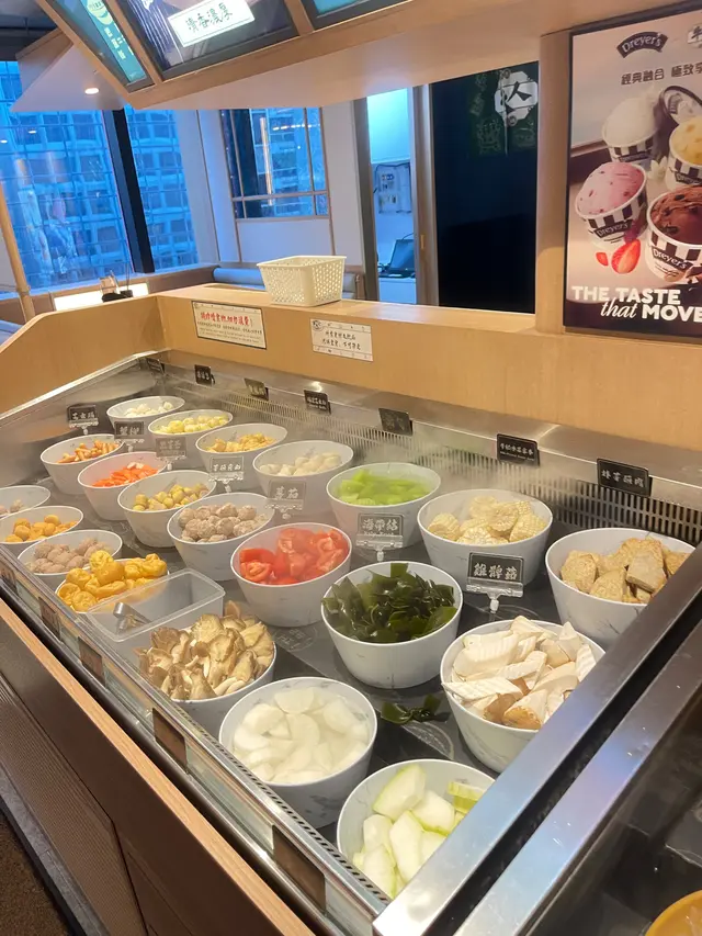 火鍋配料豐富多元,從芝士腸、海膽包、爆龍芝士丸,到多款新鮮蔬菜如牛奶水果粟米、水蓮、娃娃菜等,應有盡有。