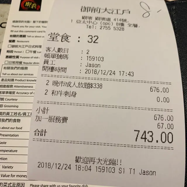 任食海鮮就唔包括蠔、鮑魚,而其他貝類、蝦就可以任點。建議有海鮮磯燒時間表可以提供俾客人參考,因為有時真係唔知熟未,又怕會overcook