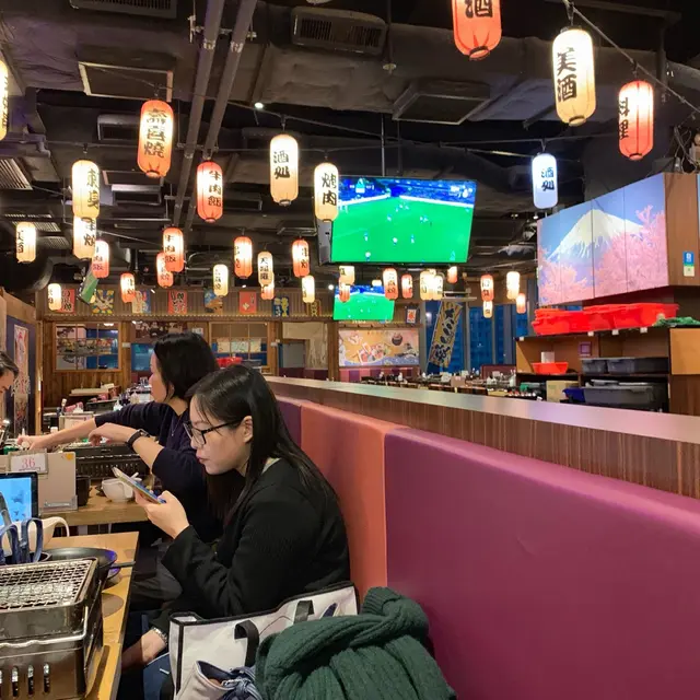環境跟其他放題餐廳差不多,座位之間都比較迫窄的,不過四方八面都掛著大電視,令每一個角度都可以看到。男朋友book了第一輪時間(5:45至8:00pm),食到差不多尾聲,眼見那時坐滿左8成人。