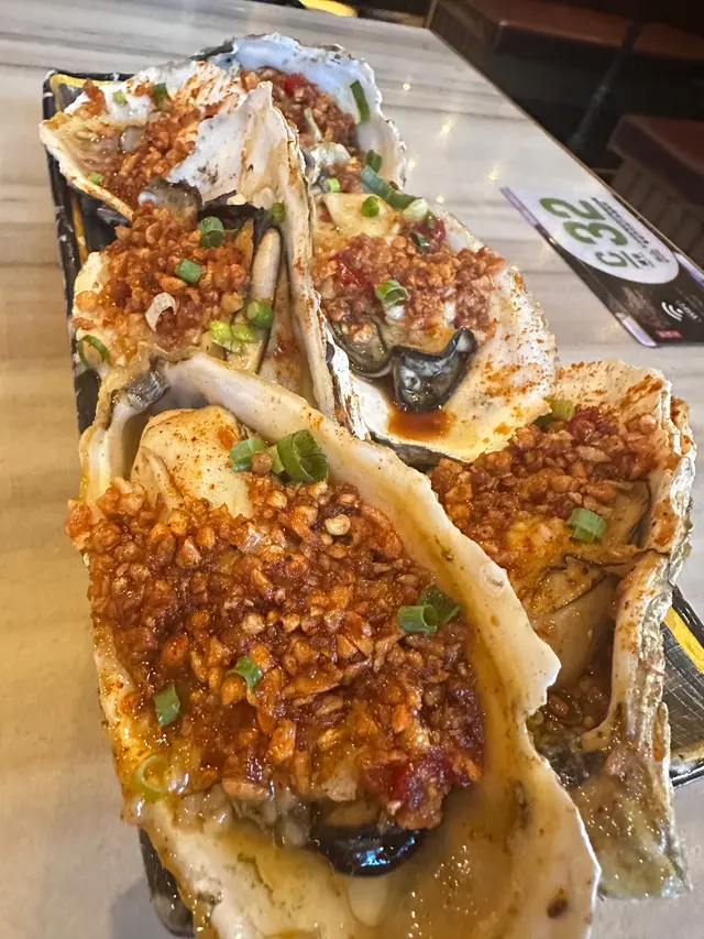 川燒珍寶蠔:肥嫩蠔肉裹著微辣蒜香醬汁,爆漿時鮮汁與辛香交織,必吃。