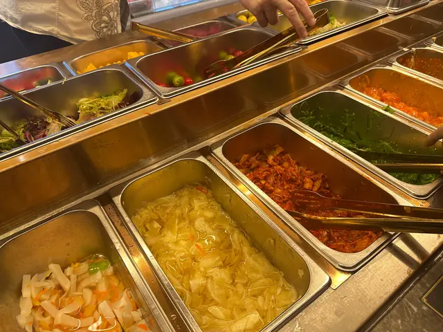 餐廳以現代和風為基調,木質裝潢搭配暖色燈光,桌距寬敞得宜。自助餐區動線分明,冷盤區與熟食區涇渭分明,食物選擇亦非常多。