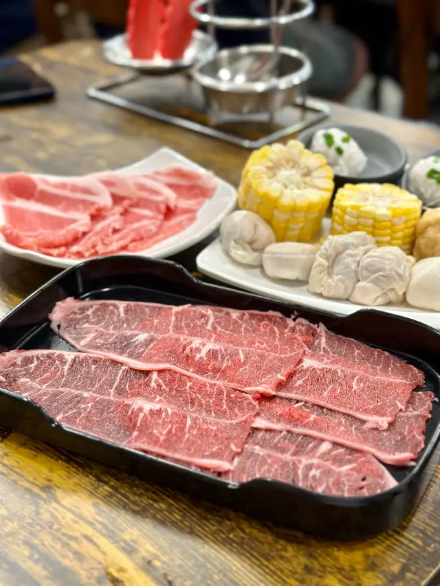 湯底都係用番混醬卜卜蜆鍋打邊爐,所以好有蒜香同辣味。牛板腱切得好薄身,肉質都淋同滑😋。火鍋配料都有好多選擇,基本嘅丸類、墨魚滑、蝦滑、蔬菜同響玲都有齊。墨魚滑食落都彈牙,有墨魚味!