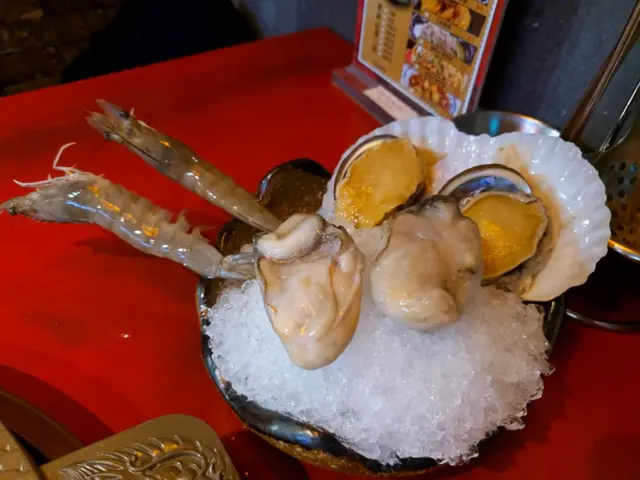 海鮮拼盤🦐🐚, 鮑魚、元貝、廣島蠔及鮮蝦。鮑魚新鮮,肉質彈牙😋蝦都夠爽口😋蠔則普通😎