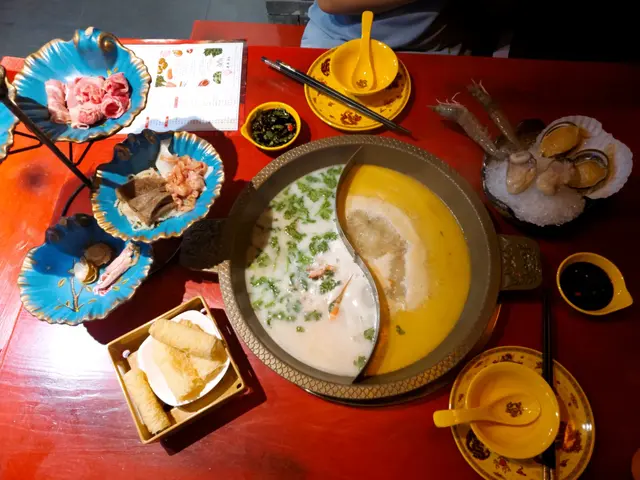 首先揀火鍋湯底,可以揀鴛鴦鍋,而且呢度主打嘅都係養顔足料湯底😍我哋揀咗蟲草花膠雞湯底配龍蝦蜆湯,不過店員話是日無龍蝦🦞 所以以海蝦代替👉👈