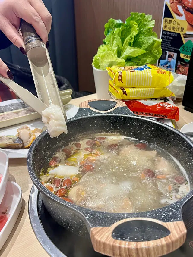 至於火鍋方面,我哋要咗 #椰子雞 做湯底,充滿椰香嘅湯汁放入 #杞子、#紅棗,聞起嚟已經夠晒滋補🤤 牛小排、牛板腱肉味香濃,加埋 #小秘書 親手炮製嘅醬汁一齊入口,零舍滋味🤤 不過要回本嘅一定要試晒佢哋嘅 #墨魚滑、#蝦滑,仲有 #花枝滑,每一款食材都係真材實料,啖啖海鮮♥️非常鮮味,絕對唔係麵粉團之作😉 出面嘅自助吧仲有無限嘅肉丸、火鍋料、即食麵… 任君選擇,真正可以吃個飽😊
