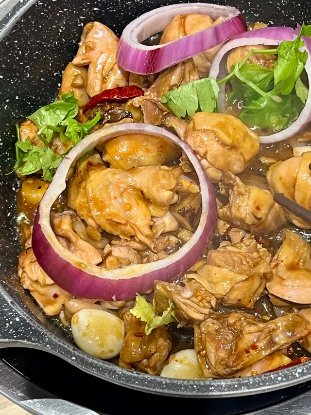 先上枱係🐣熱辣辣嘅雞煲🤩 BB辣嘅雞煲加埋芫荽同蒜子一齊炒,雞肉鮮嫩得嚟特別惹味😚