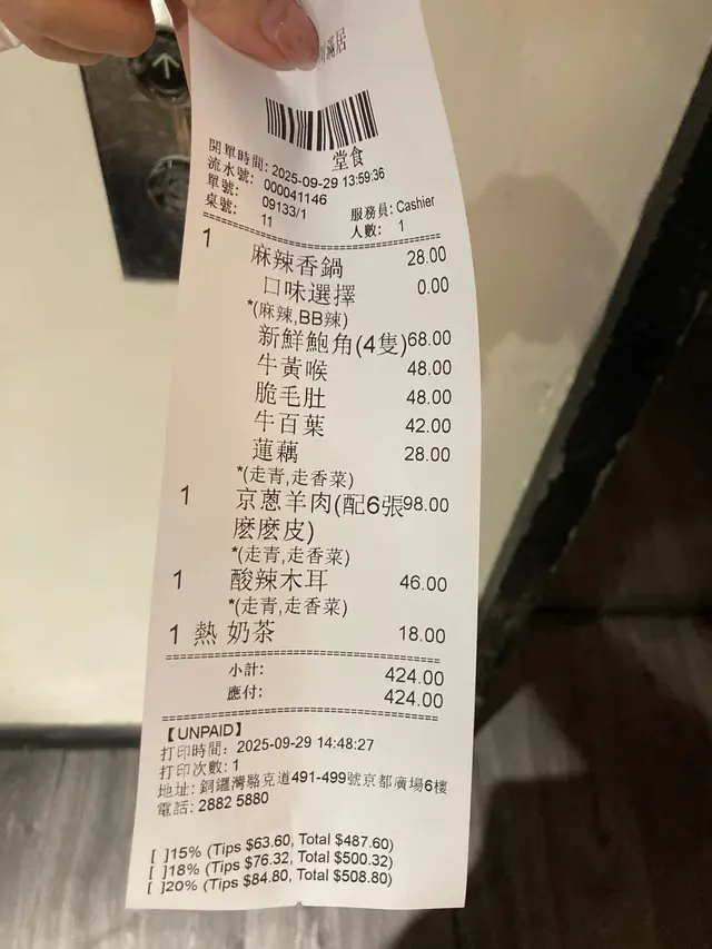 份量十足|高CP值的川菜 ischerlife等级32025-09-29116 浏览 关注 今次係二訪啦,一年前嚟食過佢哋嘅酸菜魚,大大一盤,非常好食!今次試新嘢,麻辣香鍋真心推~首先可以選擇嘅材料非常多,可以揀自己最鍾意食嘅材料!我非常鍾意爽口嘢,除咗要叫鮑魚之外,就叫咗毛肚牛柏葉牛黃喉同埋蓮藕!我第一次試麻辣香鍋入邊有鮑魚,非常爽口!我自己就好鍾意食脆毛肚牛柏葉同黃喉,好爽!佢哋嘅麻辣香鍋就叫咗微辣,唔好睇好多辣椒同埋好紅,真心係微辣,我唔係好食得辣都可以接受,仲要麻麻香香咁!我覺得鮑魚同蓮藕係必點!另外,佢哋嘅前菜酸辣木耳,真心超開胃,好夠酸爽!另外再叫咗京蔥羊肉,一定要配麻麻皮食,煙煙韌韌!以上食记乃用户个人意见 , 并不代表OpenRice之观点。赞好分享份量十足|高CP值的川菜 川滿居 (京都廣場) https://s.openrice.com/QrLT0TPvU00检举 张贴 评分4味道4环境4服务4卫生4抵食用餐途径堂食
