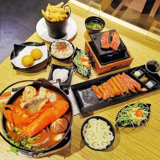 朋友的"龍蝦海鮮蕃茄鍋"賣相吸引,蕃茄湯酸酸甜甜,加熱後更顯香濃。開邊龍蝦配上魚塊、蝦仁、蜆、魷魚、豆腐及大量蔬菜,再加上烏冬,份量十足。