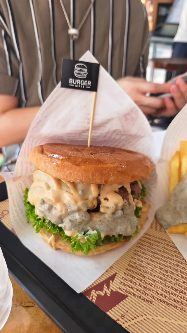 份量好誇張的美式漢堡 JK_JessieKim等级32025-10-0824 浏览 关注 雙層安格斯牛芝士漢堡 $152 份量好誇張,選用美國安格斯牛肉,手打製成的漢堡排厚實多汁。特別選用瑞士芝士,其溫潤奶香與牛肉的濃郁相得益彰。配料搭配剛剛好:新鮮生菜、番茄、炒香的洋蔥絲與酸瓜,有效平衡整體口感 黑松露蘑菇安格斯牛漢堡 $125 這款更顯精緻優雅。黑松露醬香氣濃郁卻不搶戲,與炒香的蘑菇完美融合。漢堡排同樣保持水準,肉汁豐富。份量相對適中, 令人欣賞的是那經過牛油烘烤的麵包,口感加分不少。小食推薦日式炸雞粒 $65 確實值得一試。外層炸粉輕薄酥脆,內裡雞肉保持驚人的嫩滑度。火候控制得宜,鎖住肉汁的同時不顯油膩。以上食记乃用户个人意见 , 并不代表OpenRice之观点。赞好分享份量好誇張的美式漢堡 Burger Mate https://s.openrice.com/QrLT0qhXU00检举 张贴 评分5味道4环境5服务4卫生5抵食用餐日期2025-09-30用餐途径堂食