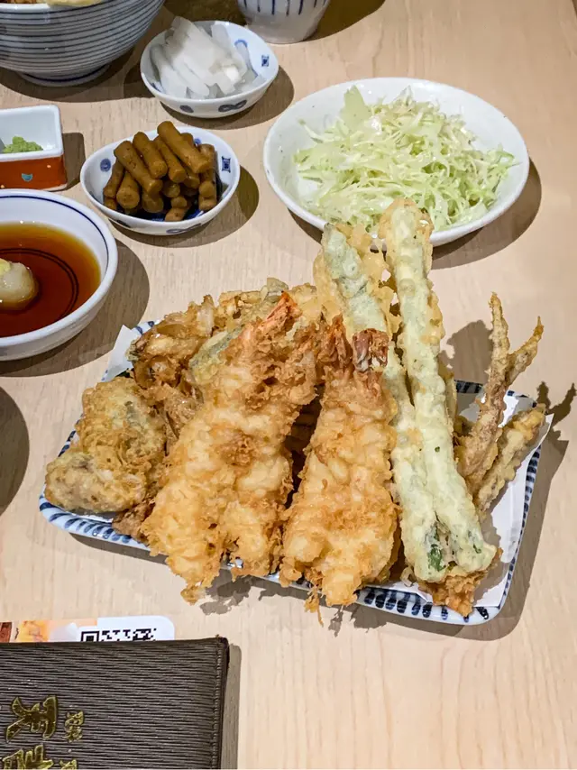 另外餐廳嘅沙律菜🥗有、醃牛蒡同醃蘿蔔都係無限量添加,自己大愛個醃牛蒡配牛蒡茶,令成餐飯都感覺好養生,呵呵!綜觀餐廳嘅天婦羅我覺得係中中挺挺,過江龍計總算不負七年蟬聯日本丼聯盟天丼金賞獎之名。事實上專做天婦羅丼飯店喺香港並唔多見,所以大家想食個有質素少少嘅天婦羅,我都推介大家去試下啱唔啱口味嘅