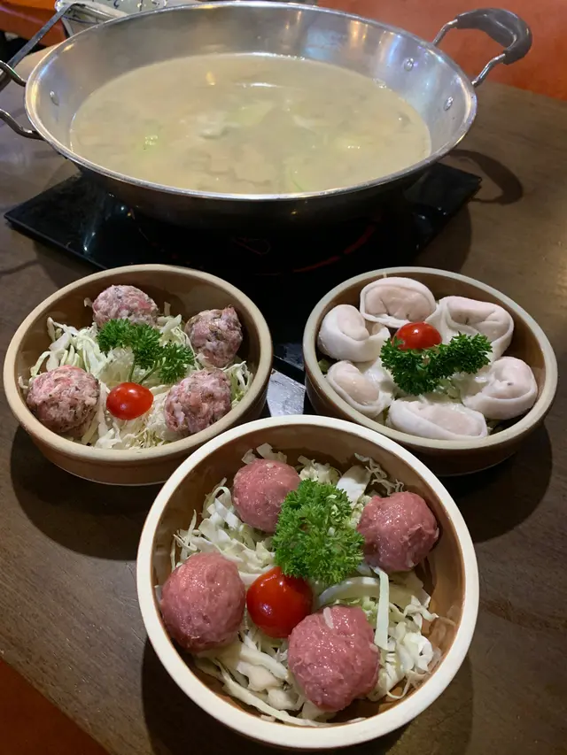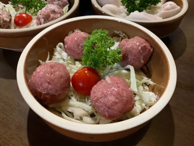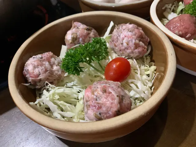 半份梅菜豬肉丸,肥瘦相間的五花肉剁碎,搭配醃制得恰好處的梅菜,經過巧妙的手工揉捏,形成一個個圓潤飽滿的丸子。梅菜特有的酸香與豬肉的鮮美相互滲透,達到極致平衡。