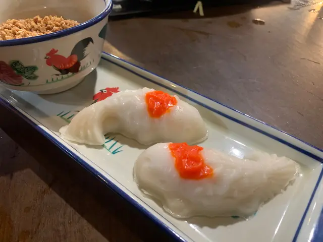 魚皮餃用新鮮魚肉製成的薄如蟬翼的魚皮包裹著豐富的餡料。