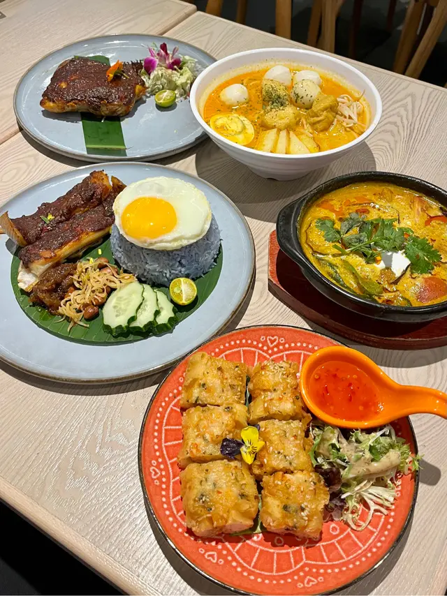 軟嫩的魔鬼魚表面鋪滿厚厚的參巴醬,辛辣惹味。椰漿飯經椰奶和香蘭葉烹熟,清新獨特的飯香。