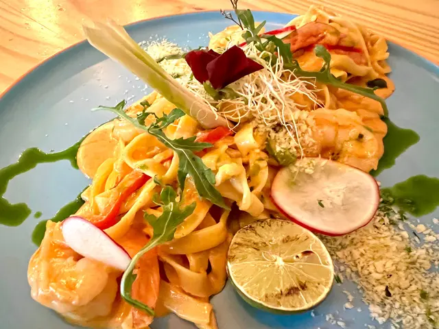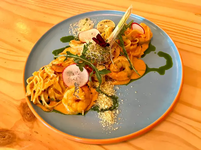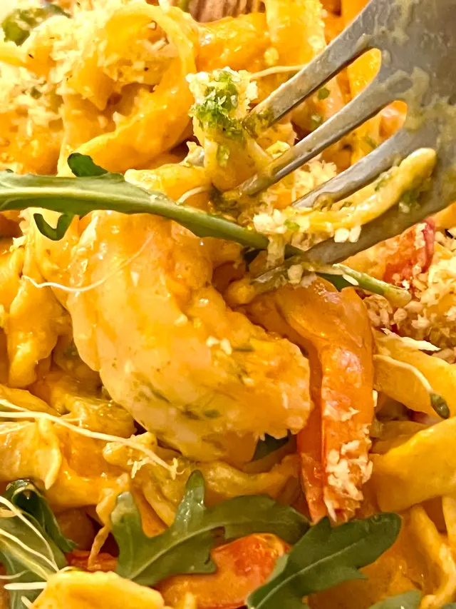 -「冬蔭公海蝦闊條麵 」:我鍾意Fettuccine 嘅口感,呢度煮得少少 al dente, 啱我胃口😋,亦都好 creamy, 仲辣辣哋,食落好開胃😋;海蝦🦐肉質結實😋