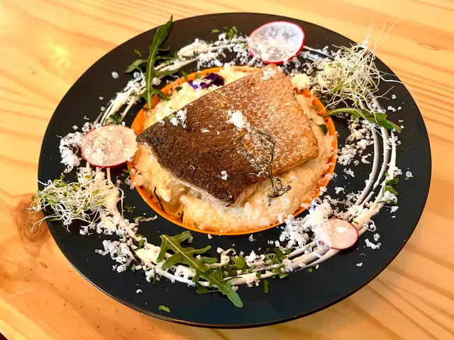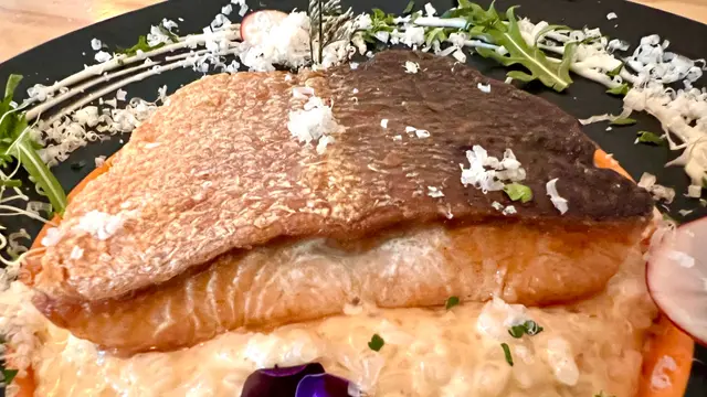 -「辣味噌三文魚扒燉飯」:又係煮得好 creamy, 又係辣辣哋好開胃😆;三文魚扒嘅魚皮煎到脆脆哋,好食😋
