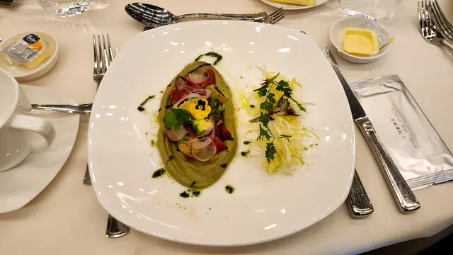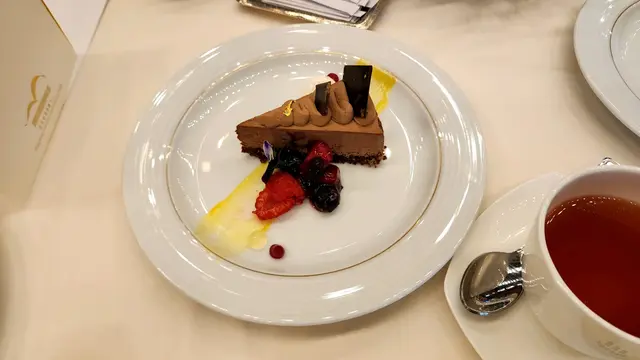 本身不太喜歡食用花,所以無食,同埋下面面嘅薯蓉味道怪怪地。另外,個甜品亦唔好味,類似啫哩裝嘅物體,我食咗兩啖就已經放棄,只係食咗旁邊伴碟啲水果。