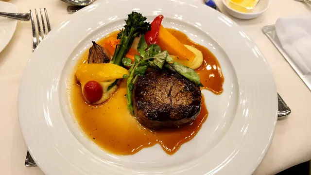主菜係牛扒,但塊扒好厚,又煎得比較熟,同埋分量細咗啲,我食完覺得唔係好飽,好在早餐時我食多咗,先頂得住。