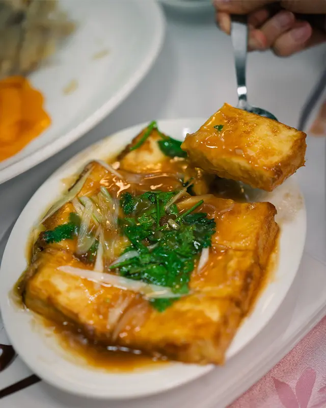 經典魯菜,豆腐先裹上蛋液煎至金黃,再用高湯「塌」入味,豆腐保持住軟嫩同吸收高湯的鮮美😍