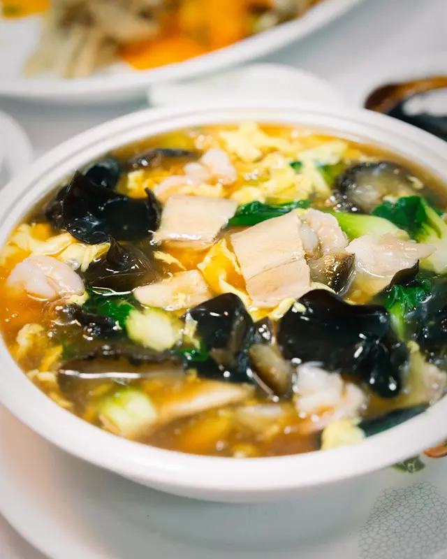 另一道經典魯菜,類似烏冬麵,有嚼勁,用芡做湯汁,每條麵條都好掛汁,配料豐富有海參、木耳、肉片同蛋花,充滿鮮味同鹹香☺️
