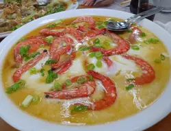 花雕蛋白蒸海蝦,蛋白有好濃既花雕味。 海蝦新鮮,肉質厚實入晒味。