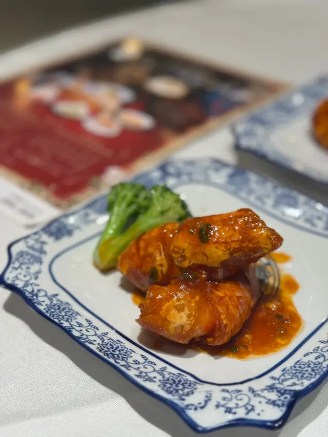 佐以翠綠上湯西蘭花;酸甜有致的醬汁跟爽彈鮮甜的大蝦完美結合,味道層次鮮明