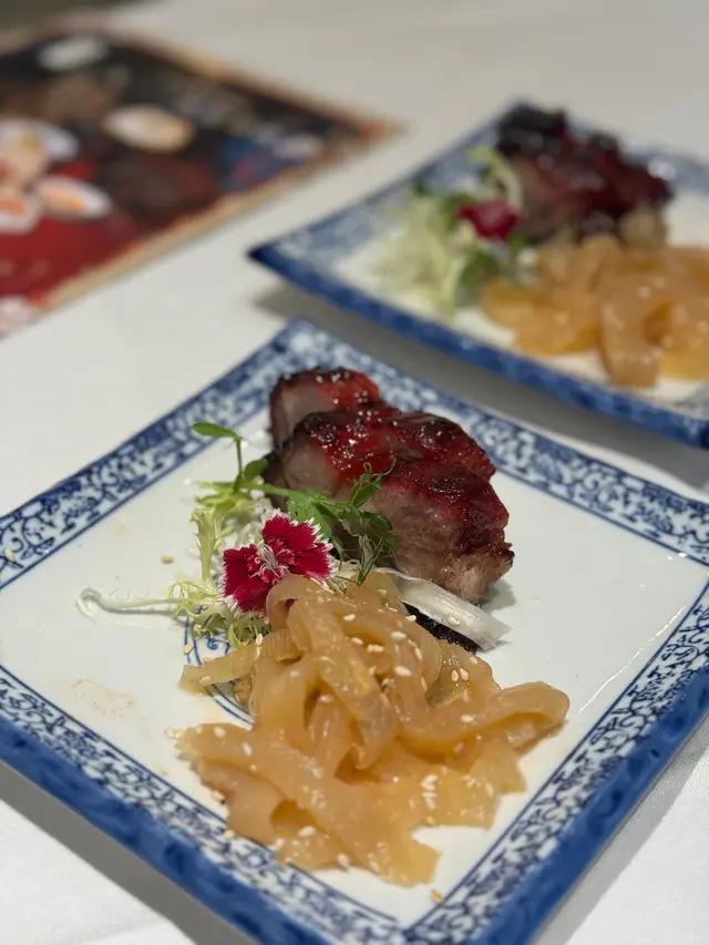 附海蜇,以芝麻點綴,爽脆而充滿麻油香;厚切叉燒外層焦脆,燒至微燶邊,肉嫩緊緻帶香甜蜜汁香,加上擺盤精緻用心好加分