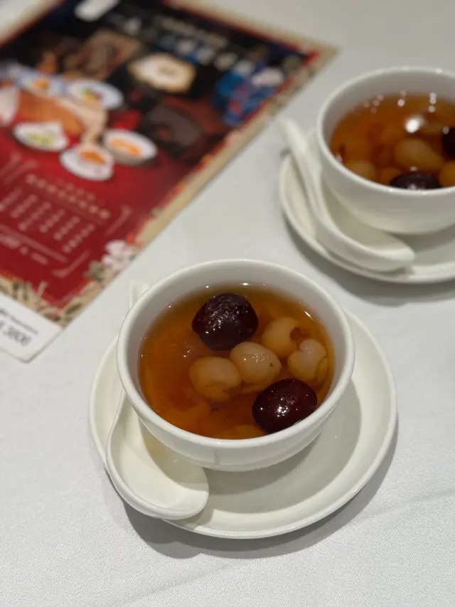 最後奉送精選甜品,當天為桂圓紅棗茶及杞子桂花糕;桂圓紅棗茶輕甜養生,杞子桂花糕清香 Q 彈