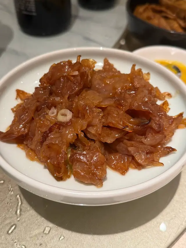 • 百頁結紅燒肉的醬香有餘但層次略單,鹹度重半拍,沒有當年那種「黏唇而不膩」的精準平衡。