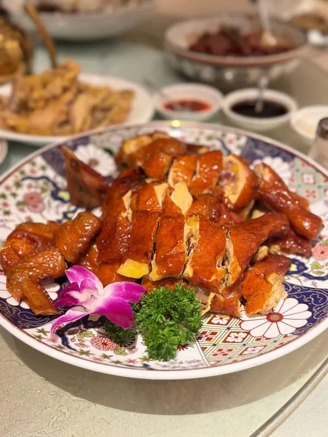 • 清炒河蝦仁火候準、蝦肉脆甜;脆皮乳鴿皮色瑰紅、肉質滑嫩,回憶中的香氣還在。