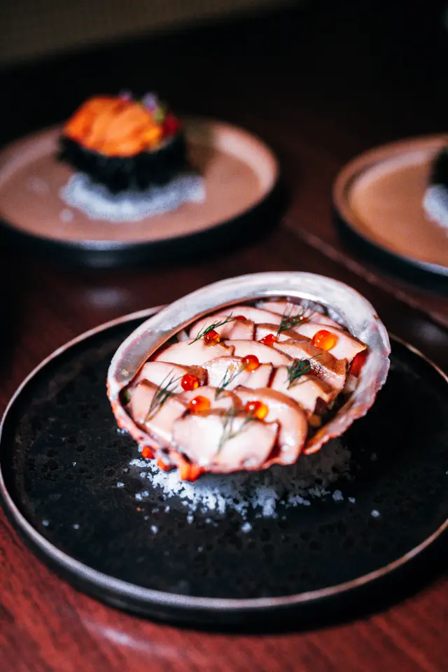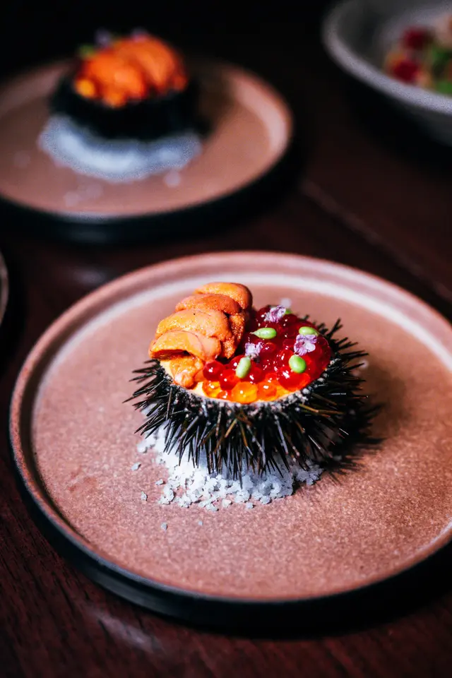 賣相相當精美,頂部鋪上海膽和三文魚籽,底層海膽豆腐口感綿密近似奶凍。淋上海膽醬油,海膽的鮮甜與豆腐的淡雅形成對比。